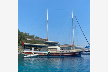 Kaya Mehmet gulet, which was renovated in 2022, provides blue cruise service for up to 16 people with her 8 cabins with a length of 27.5 m.