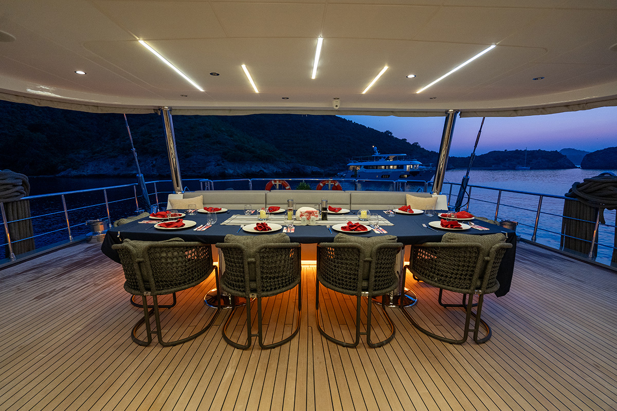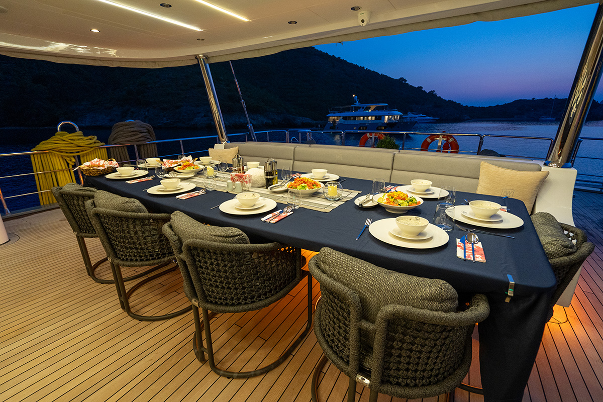 The charter rate includes crew services, daily housekeeping, linens & towels, and Turkish port fees. These inclusions ensure a smooth and comfortable cruising experience.