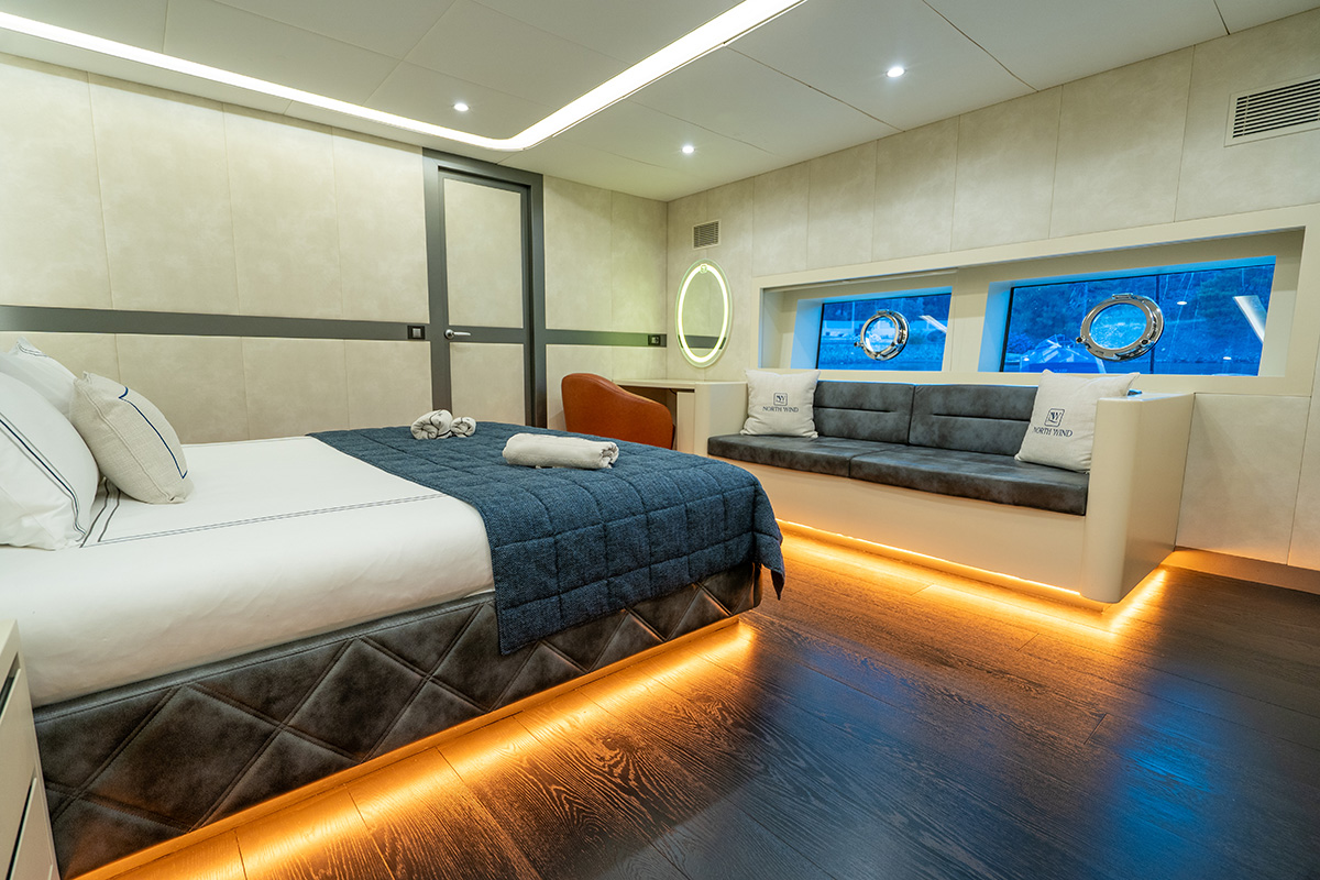 North Wind features Wi-Fi, onboard entertainment systems, and a selection of board and card games. Her generous deck areas are perfect for relaxation or social gatherings.