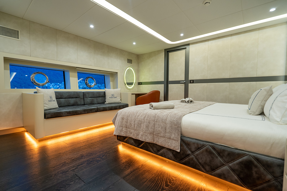 North Wind is a striking 47-meter, 2023-built ultra deluxe gulet designed for guests seeking exceptional comfort and elegance. Accommodating up to 10 guests in 5 spacious cabins (1 Master, 3 Double, 1 Twin), she combines modern craftsmanship with expansive outdoor areas and a highly skilled 8-crew team. With powerful engines and refined interiors, North Wind delivers a superior cruising experience across the Turkish and Greek Islands.
