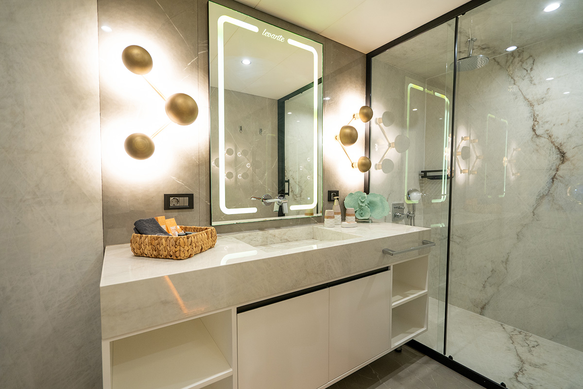 All bathrooms feature modern shower systems, premium towels, toiletries, and a clean contemporary layout. Daily housekeeping ensures exceptional hygiene throughout the cruise.